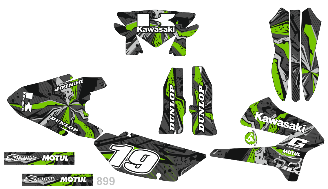 Комплект наклеек для мотоцикла Kawasaki KLX 250 450 2009 - 2014. Этот дизайн доступен на все модели мотоциклов.