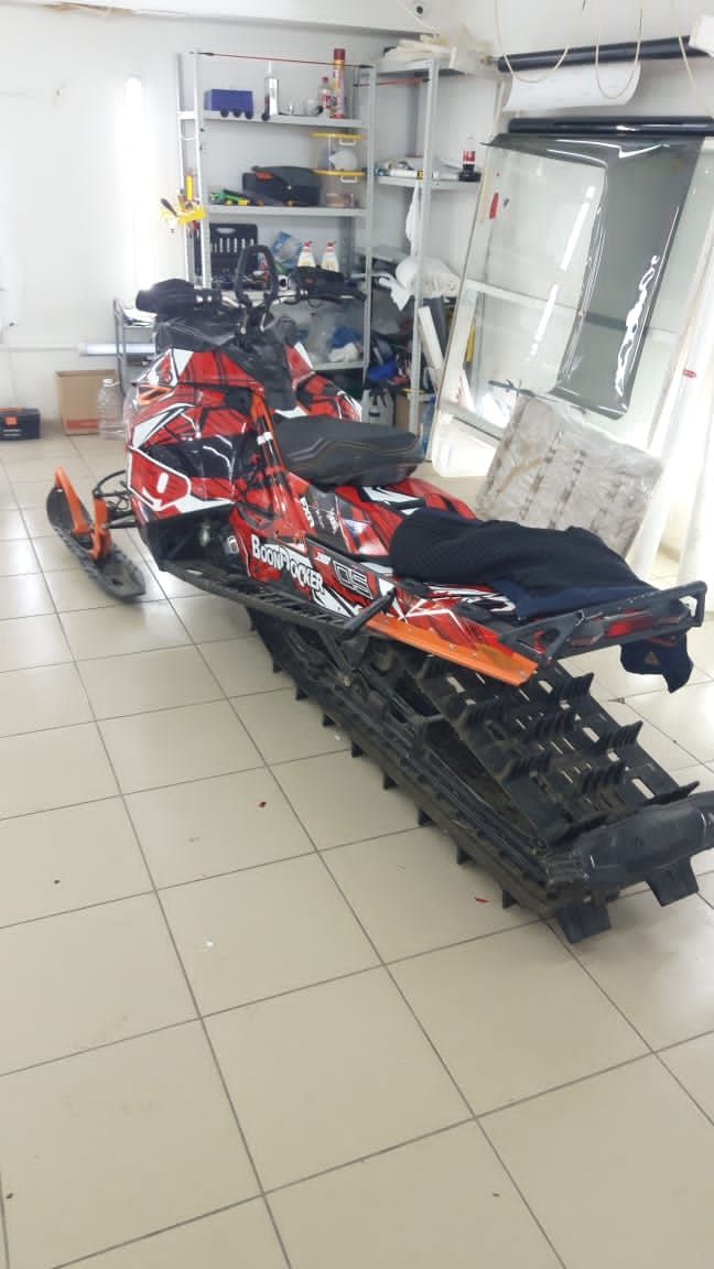 - Все наклейки мы покрываем защитной прозрачной пленкой, и вырезаем по контуру, по форме деталей снегохода.