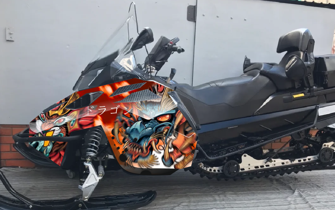 - Все наклейки мы покрываем защитной прозрачной пленкой, и вырезаем по контуру, по форме деталей снегохода.