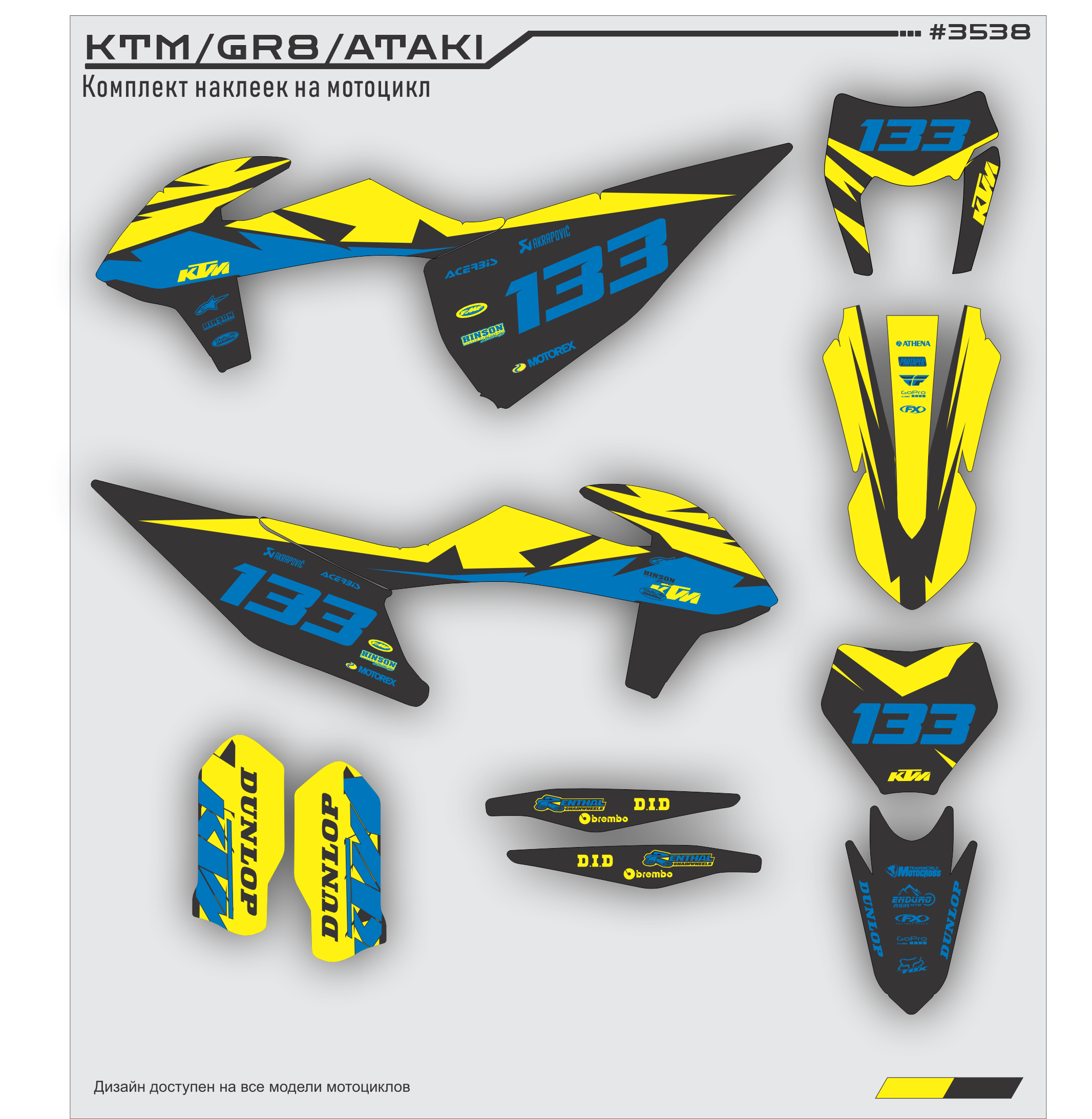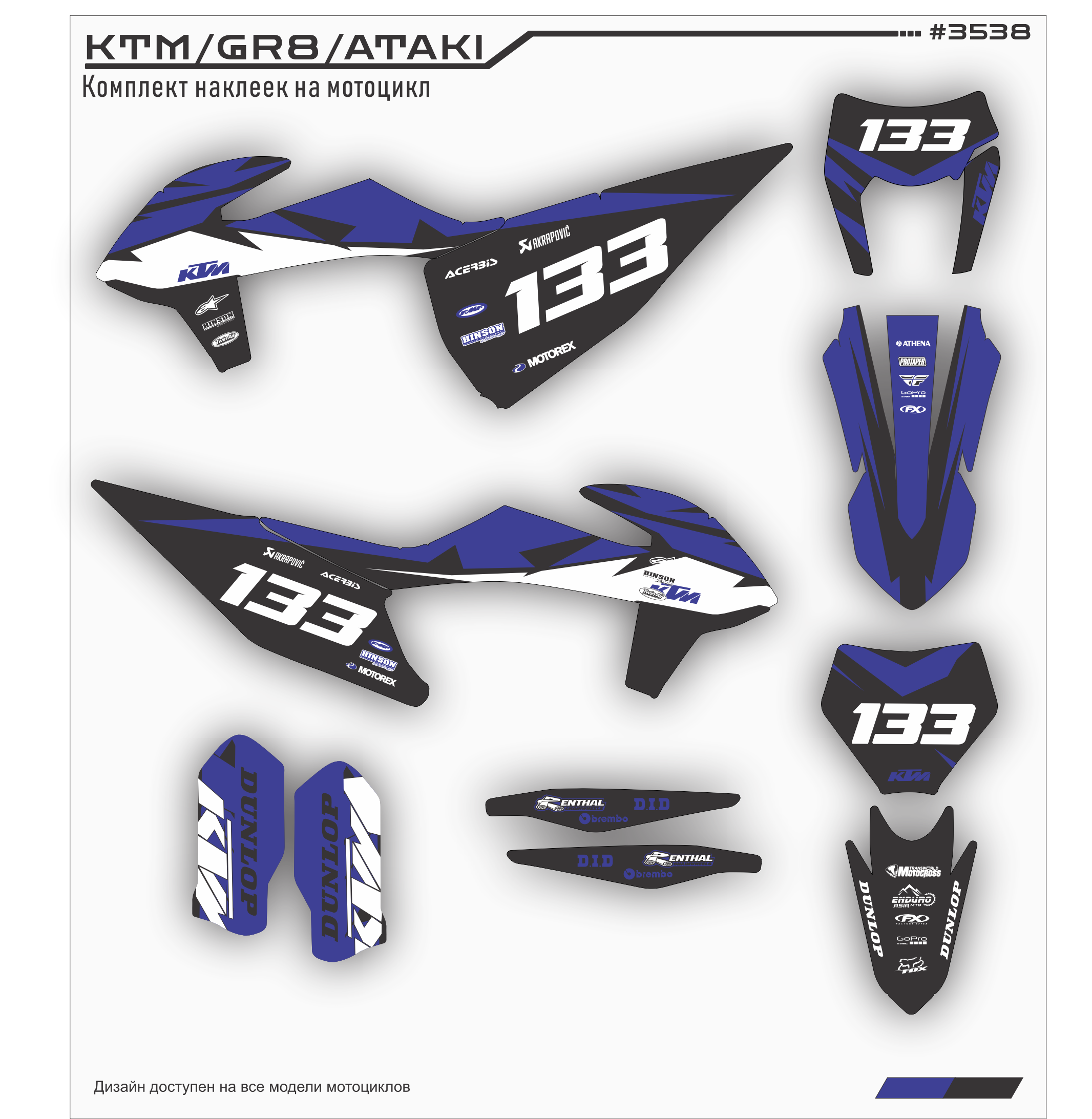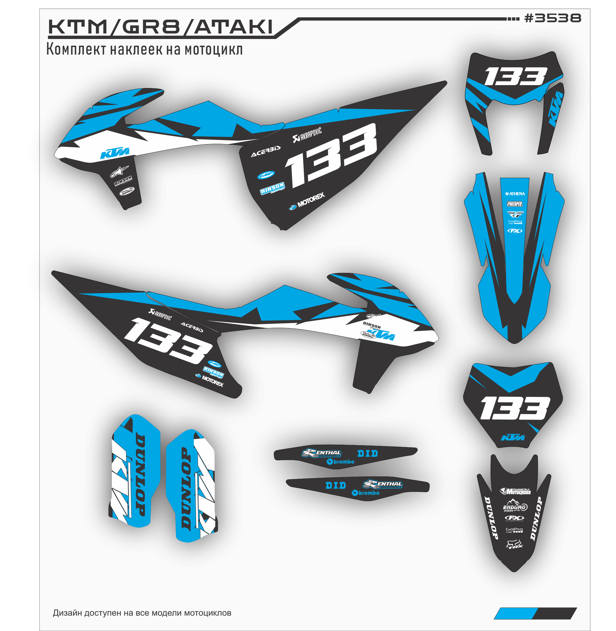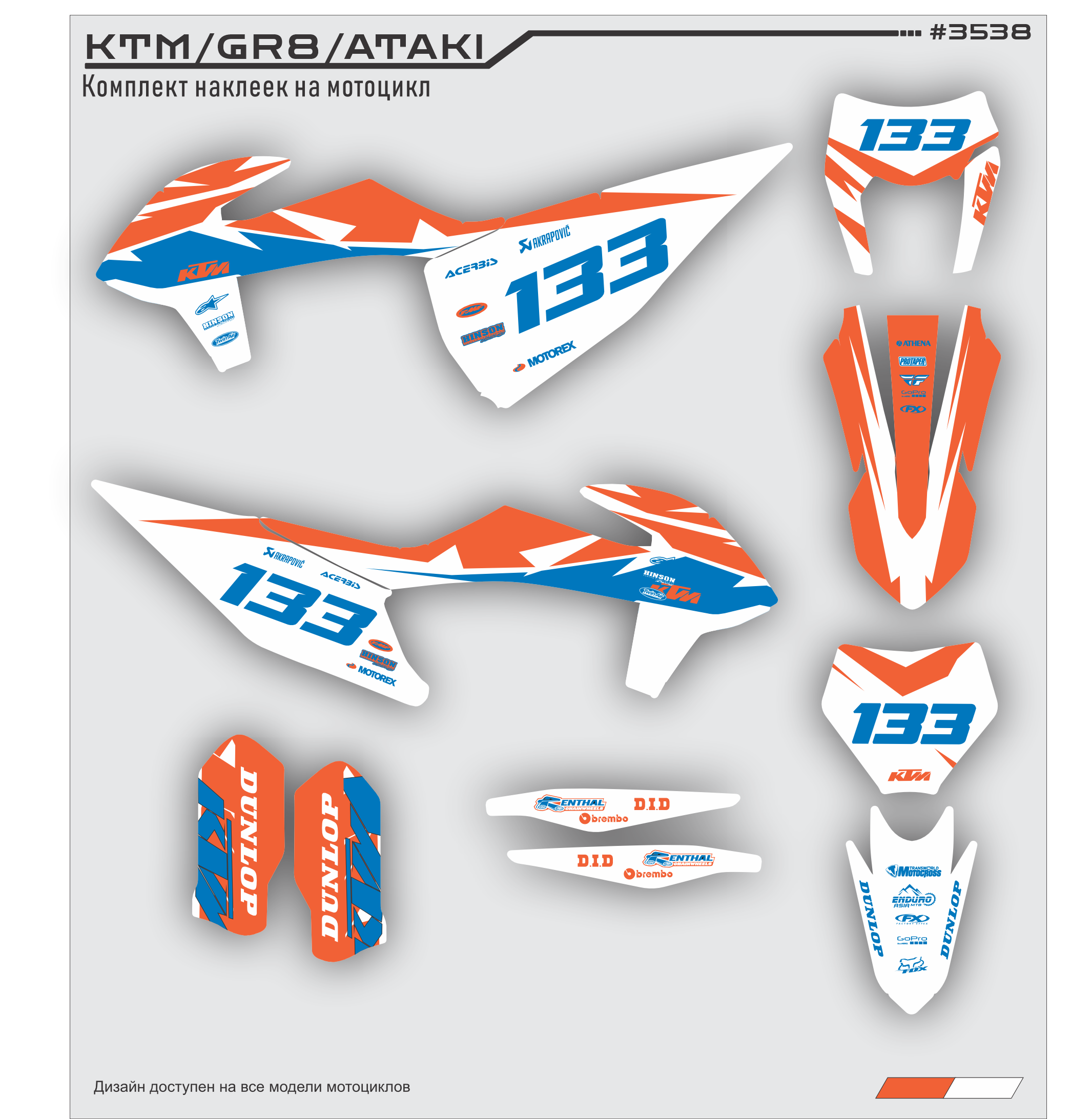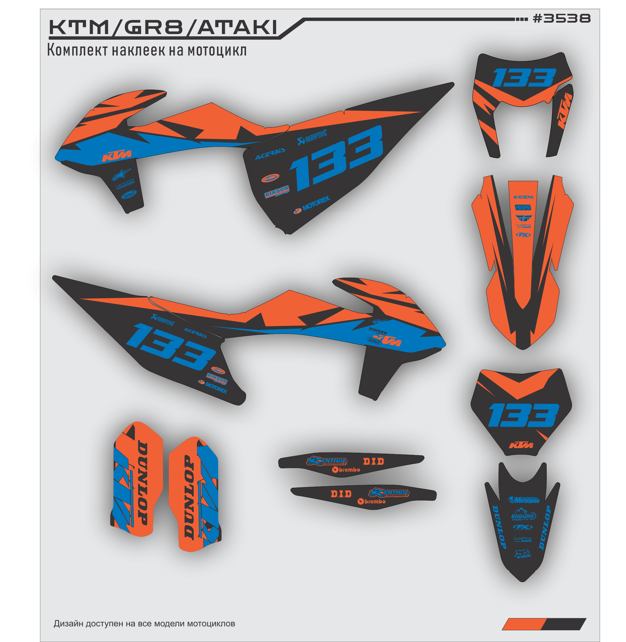 Комплект наклеек для мотоцикла KTM 250 - 450 2020 2021. Этот дизайн доступен на все модели мотоциклов.