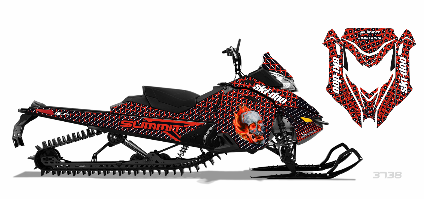 Наклейки на снегоход SKI DOO summit T3 2013-2015 #3738 Череп в огне