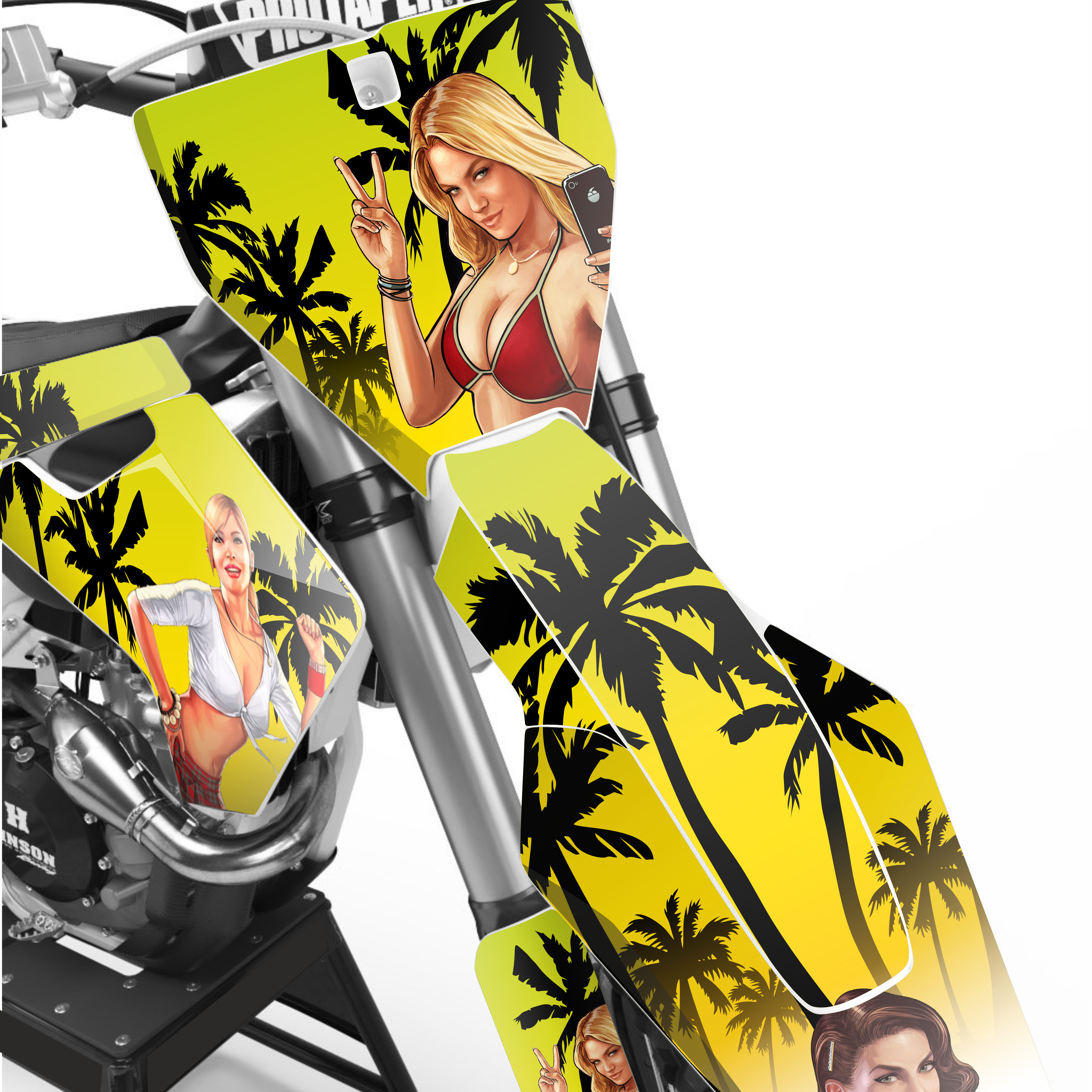 - Все наклейки мы покрываем защитной прозрачной пленкой, и вырезаем по контуру, по форме деталей мотоцикла.