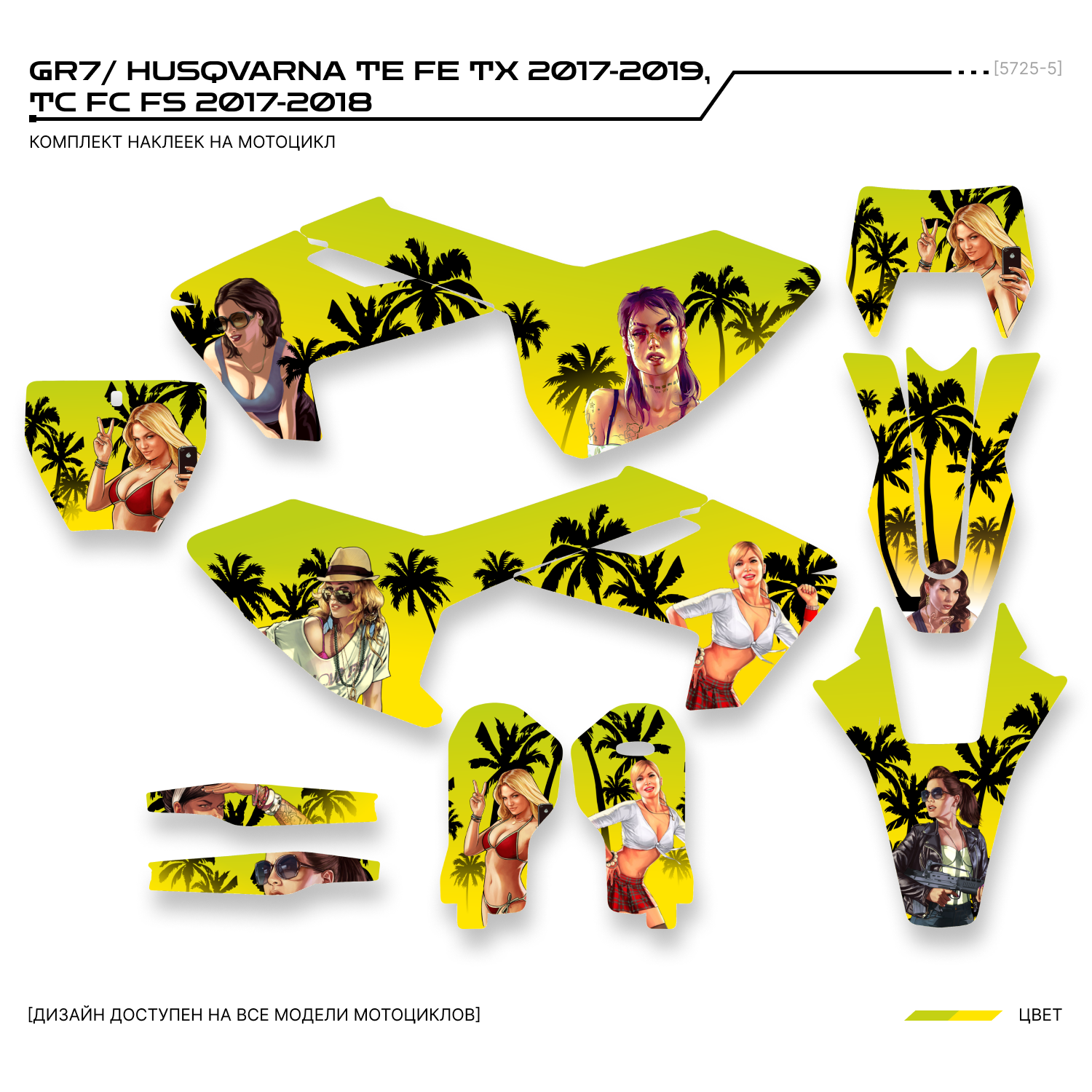 Комплект наклеек для мотоцикла GR7 ГР7/ HUSQVARNA TE FE TX 2017-2019, TC FC FS 2017-2018. Этот дизайн доступен на все модели мотоциклов.
