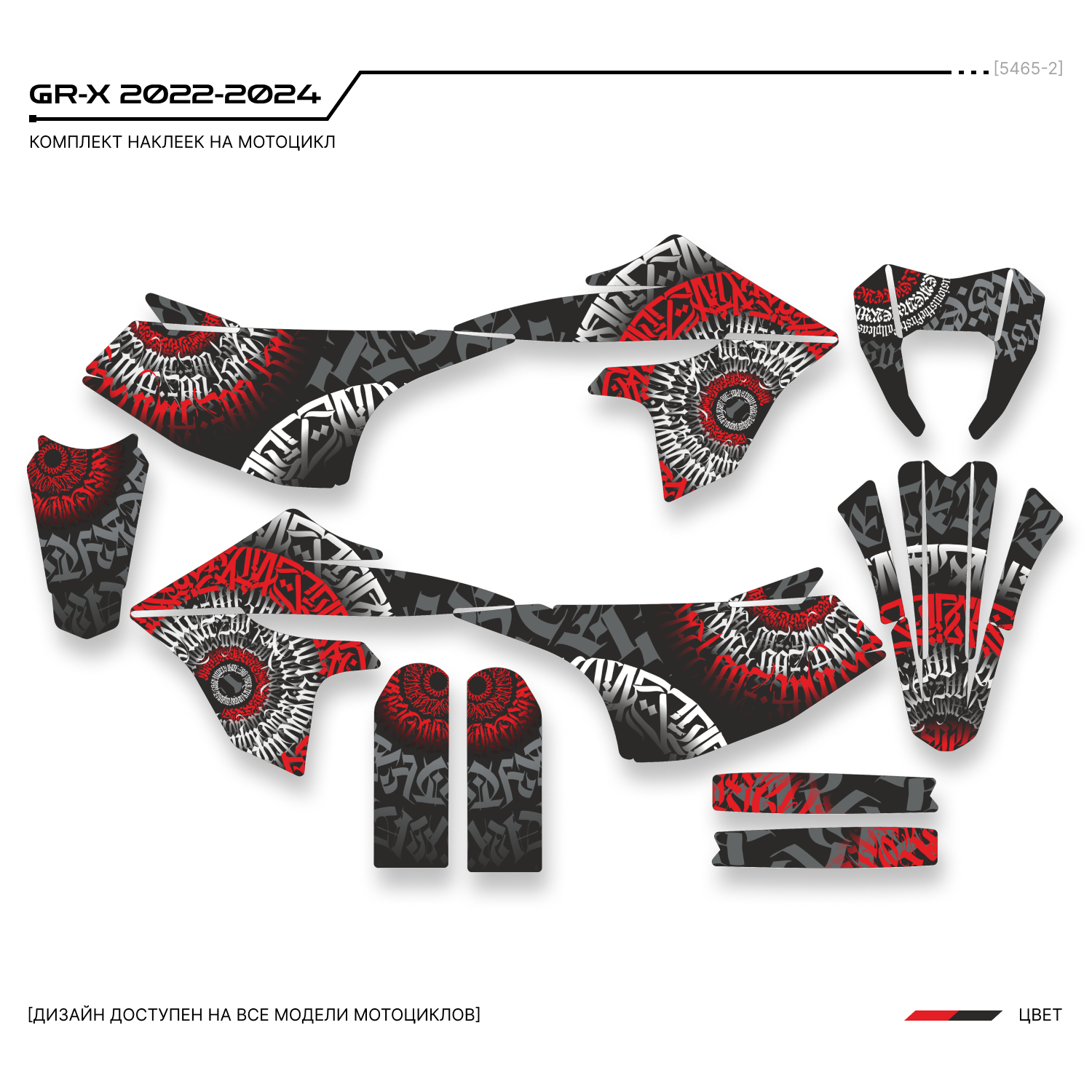 Комплект наклеек для мотоцикла GR-X 2022 - 2024. Этот дизайн доступен на все модели мотоциклов.