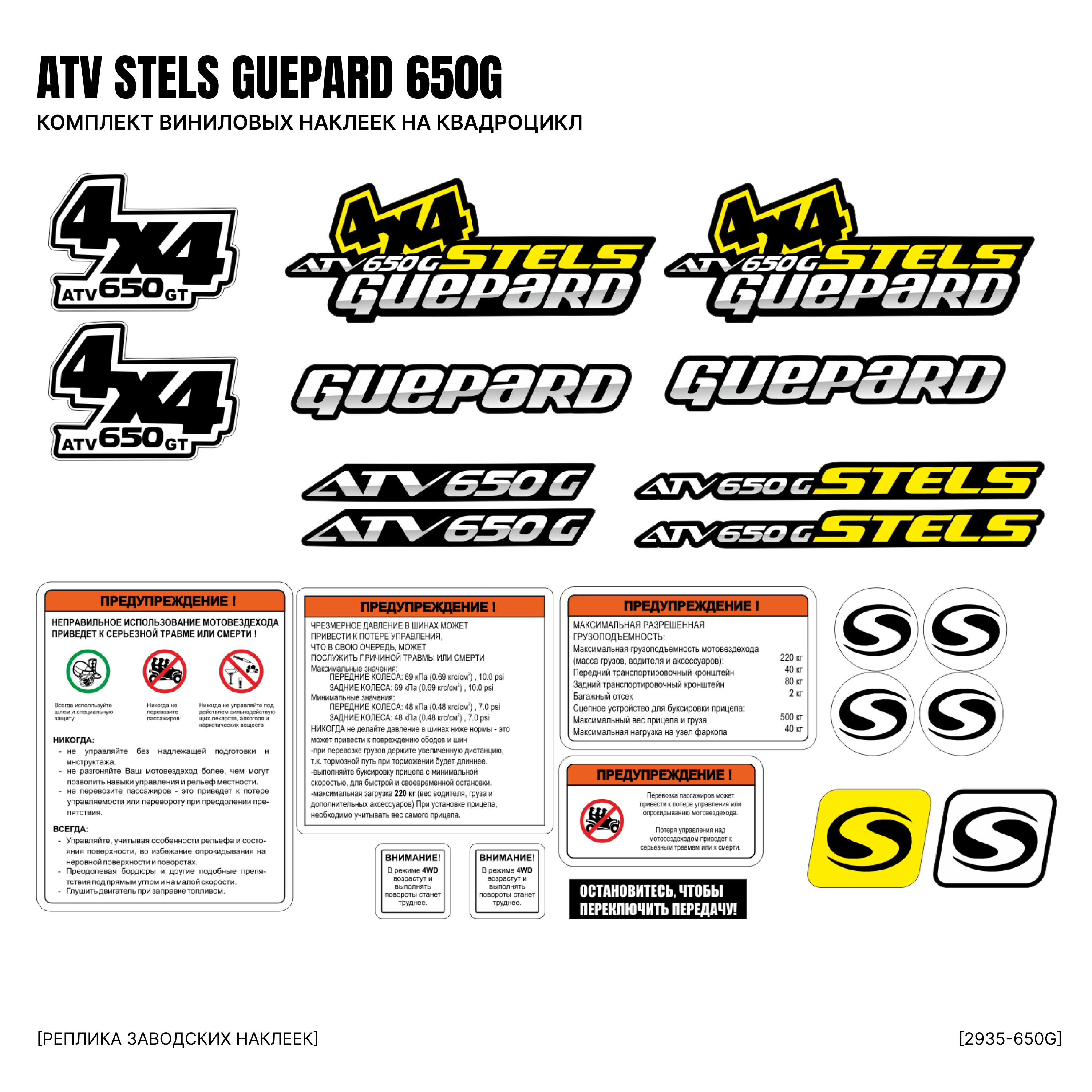 Комплект наклеек на квадроцикл Stels Guepard 650G таблички #2935-650G